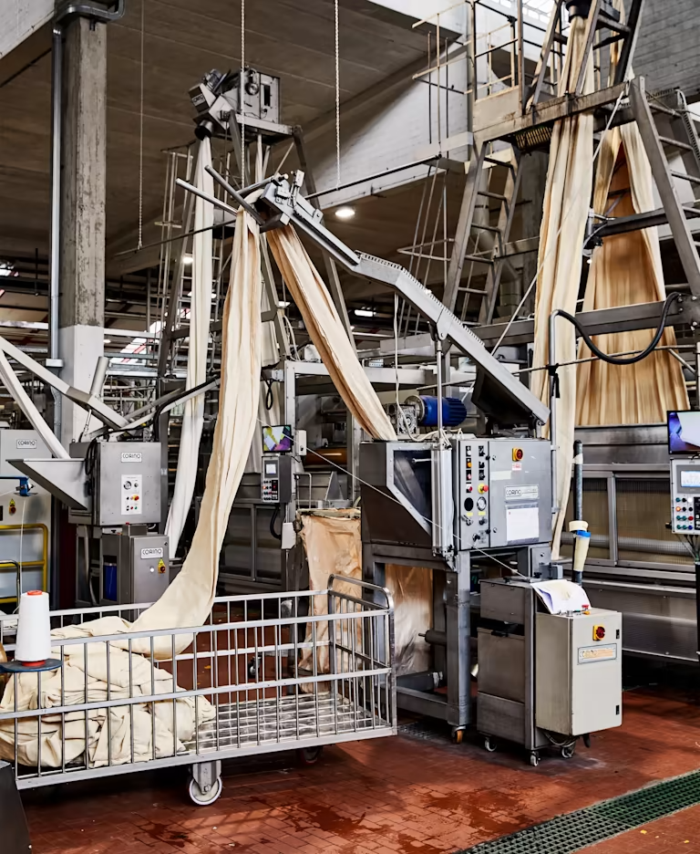 Keeping tradition alive — Thistle brushing is still alive and well at Piacenza, making them one of the last mills to use this rare technique.